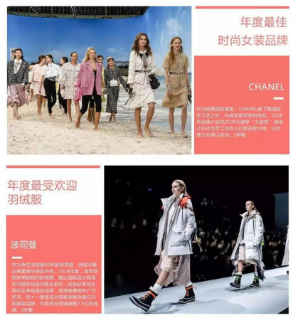 扎实专业的产品质量,不仅收获大众消费者口碑,也让波司登在国内时尚圈备受瞩目。 2018新浪时尚风格大赏榜单揭晓,波司登从Moncler、Columbia、The North Face等其他入围品牌中脱颖而出,荣获2018风格大赏时装榜“年度最受欢迎羽绒服”大奖,与Chanel、Dior等国际大牌共同位列时装榜榜首。