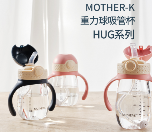 MOTHER-K重力球HUG学饮杯,一键开关,全开式不回弹上盖,方便单手操作的设计,方便清洁,不会丢失上盖配件,更避免了在开盖时与吸管的过多接触,减少细菌侵入的风险;